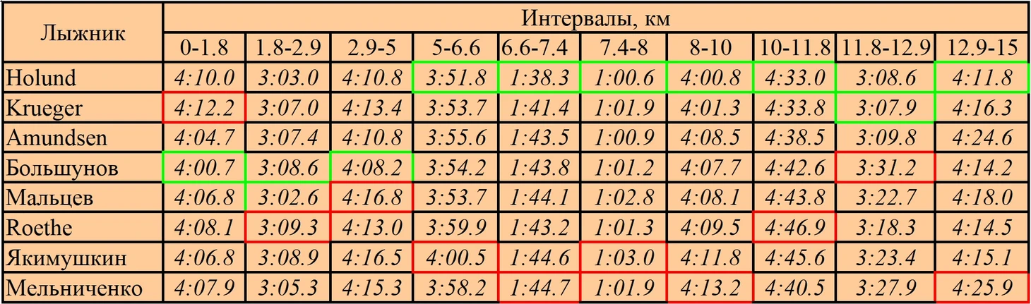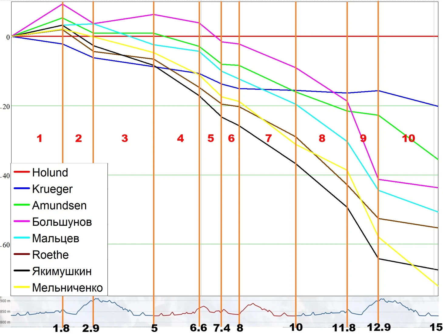 Сравнительный анализ прохождения разделки 15 км у мужчин ЧМ Оберстдорф