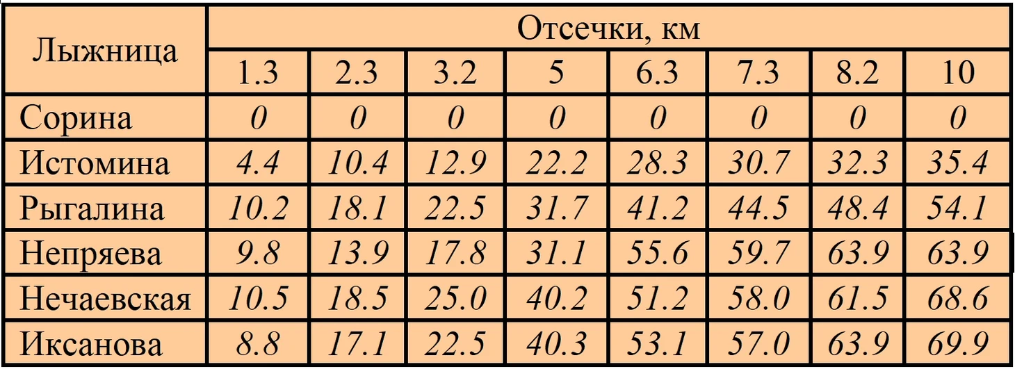 Наталья очень много проиграла на отрезке (5 - 6.3)км, зато финишный сектор отработала в одни ноги с Татьяной.