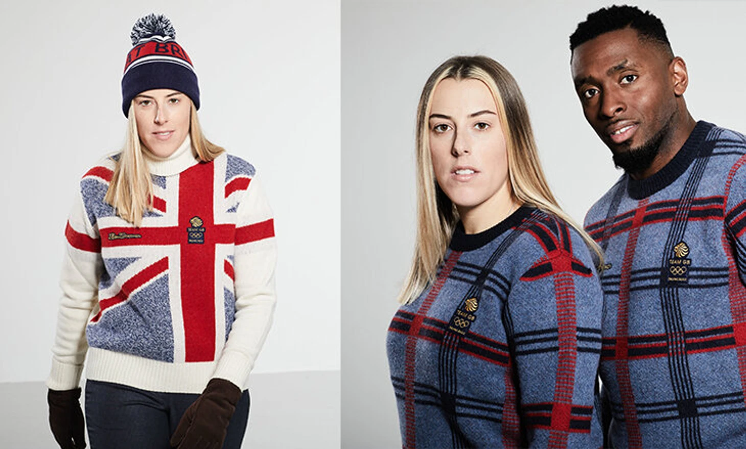 На открытие британцы наденут бежевый свитер с высокими воротником и изображением флага в приглушенных тонах. Для закрытия изготовили джемпер с круглой горловиной в клетку.