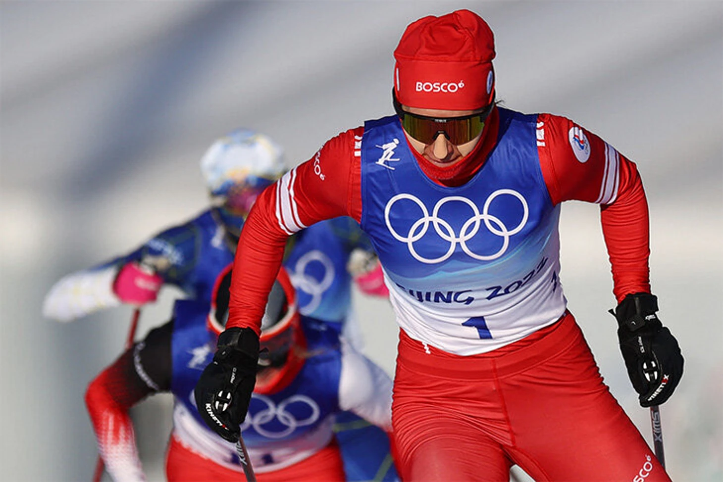 Наталья Непряева на пути к серебру в этой гонке тоже упаковалась: снуд до самых губ, тейпы на носу и щеках (об этих тейпах – главном аксессуаре олимпийцев в Чжанцзякоу – чуть ниже).