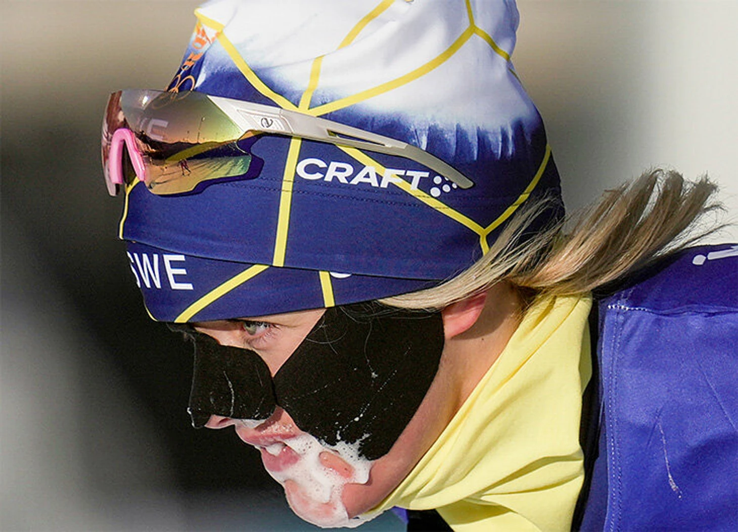 Женский скиатлон 5 февраля – найдите хоть одно открытое лицо.