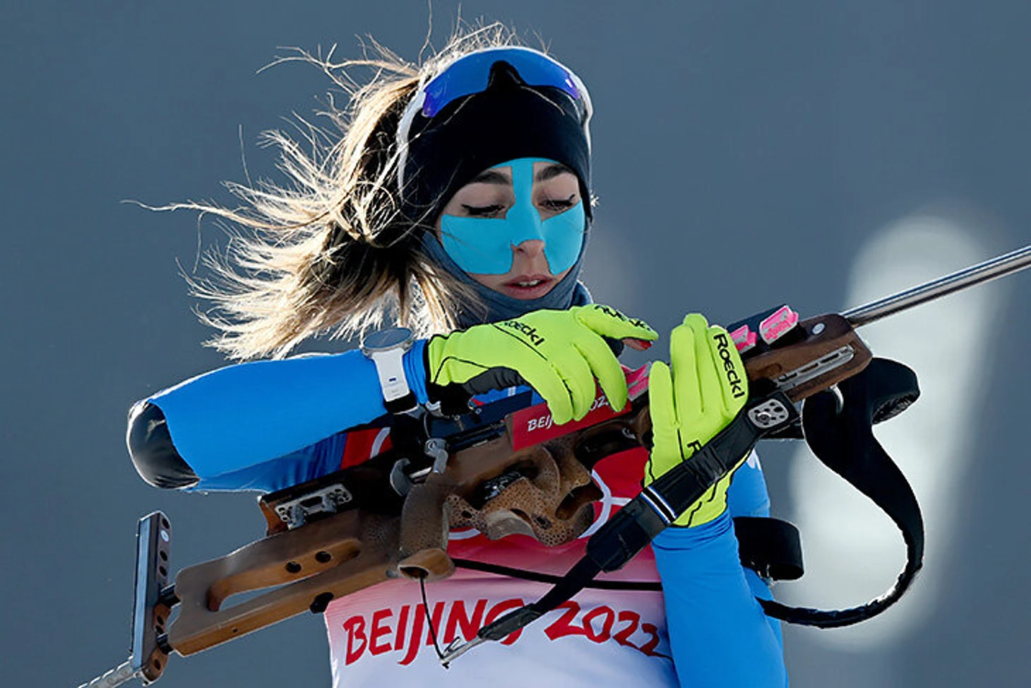 Биатлонистка Лиза Виттоцци собрала из тейпов маску. Но без гоночного мейка тоже никак!