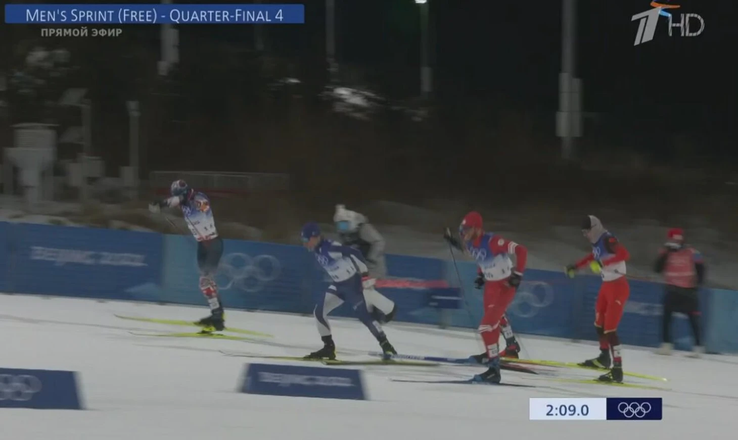 А дальше Ван Цян ринулся в подъем сломя голову, вообще не замечая лыжников вокруг. Он танком снес Пол Гульберга и чуть не зацепил нашего Терентьева. Сил у китайца явно было много, но вот опыта – нет. На финише он проиграл только Эрику Валнесу, но позже его все-таки отправили на последнее место в забеге за поведение. Впрочем, Гульбергу это не помогло.
