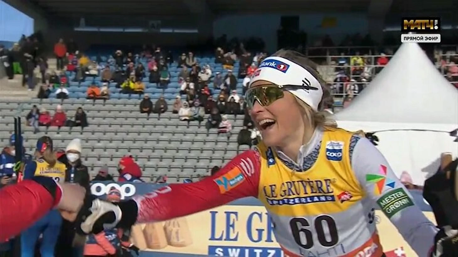 Норвежке хватило сил и отрыва, созданного по дистанции – выбросив ногу вперед, она глянула на табло и ликующе вскрикнула.