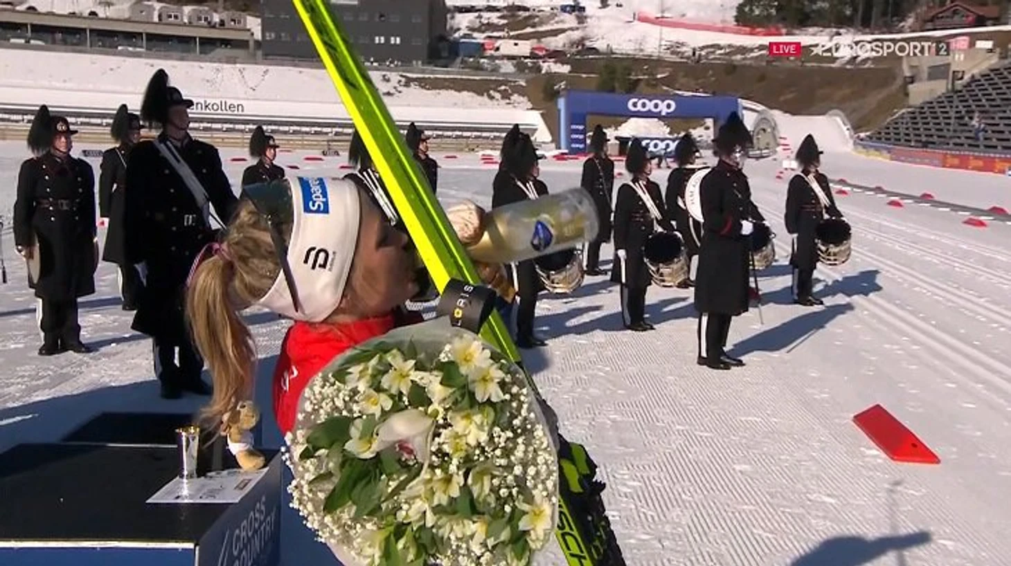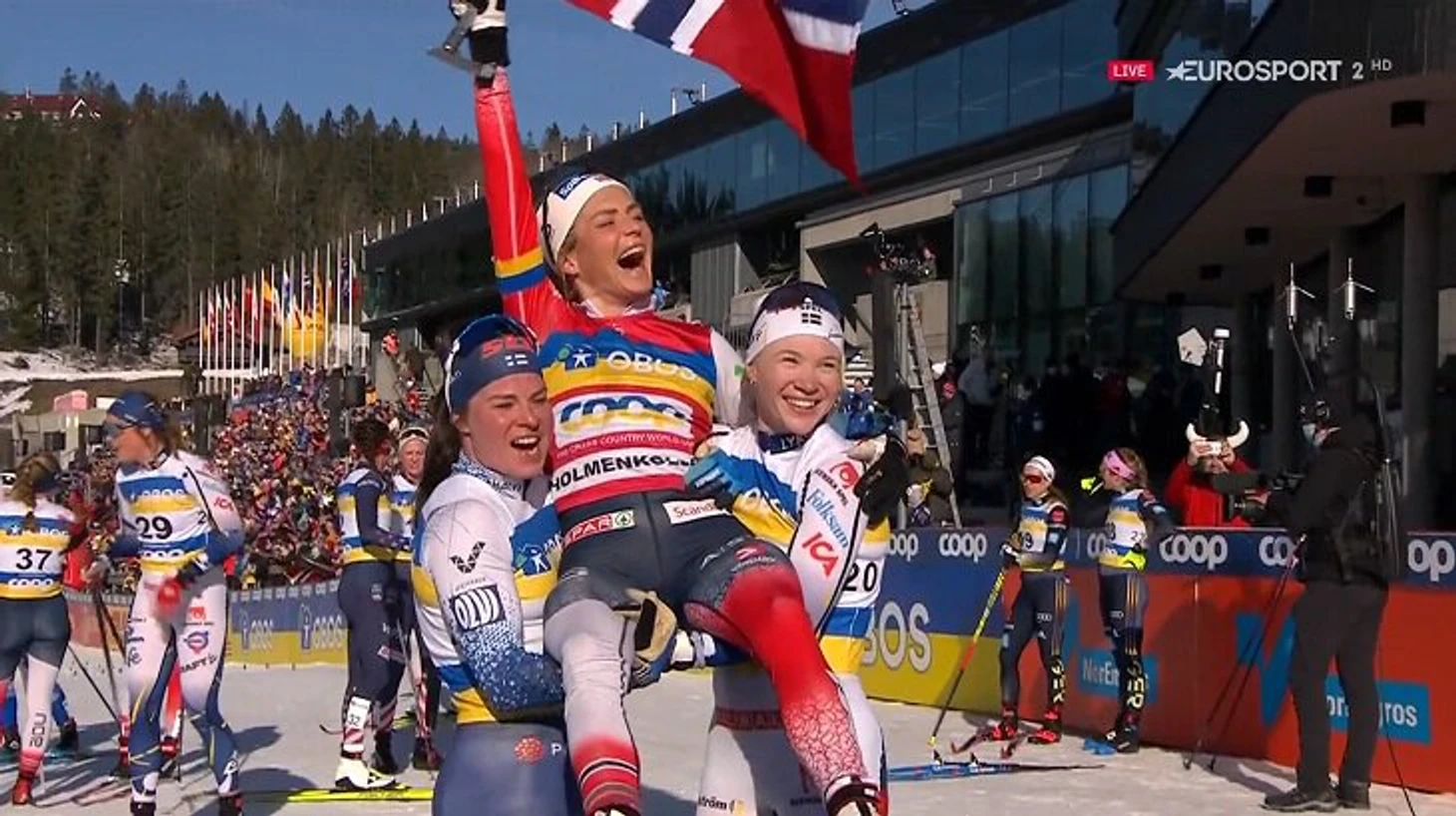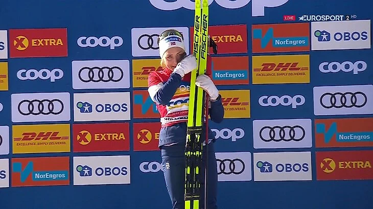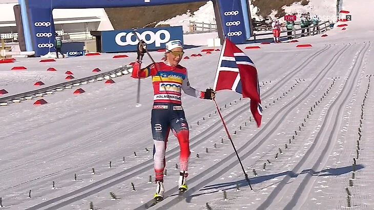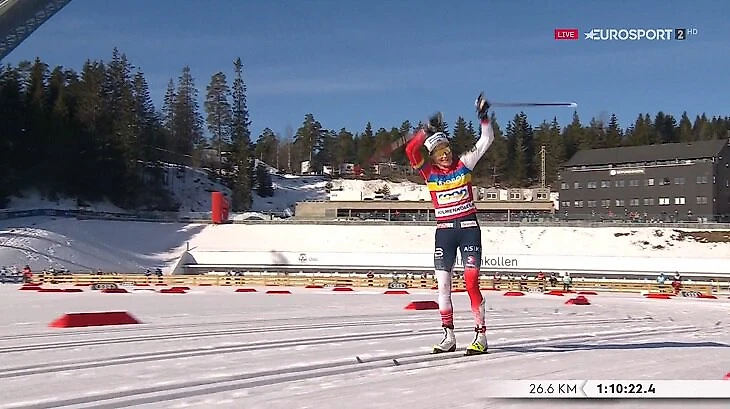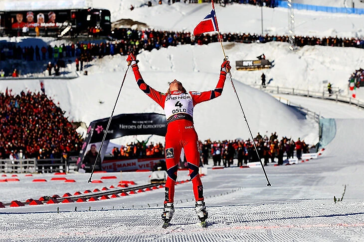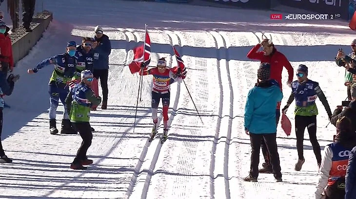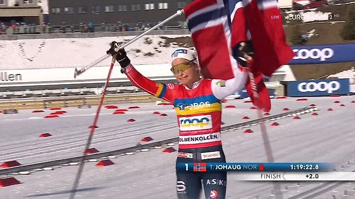 В той гонке Йохауг показала фирменный стиль – мощное начало, ранний отрыв и огромное преимущество. Финиш с флагом перед тысячами зрителей, да еще и на домашнем ЧМ – победа мечты.