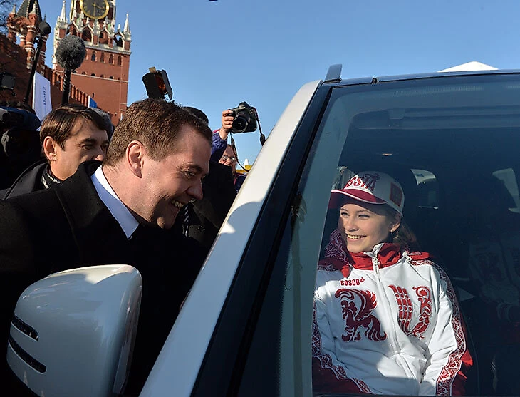 А это 2014-й: Председатель правительства России Дмитрий Медведев и Юлия Липницкая