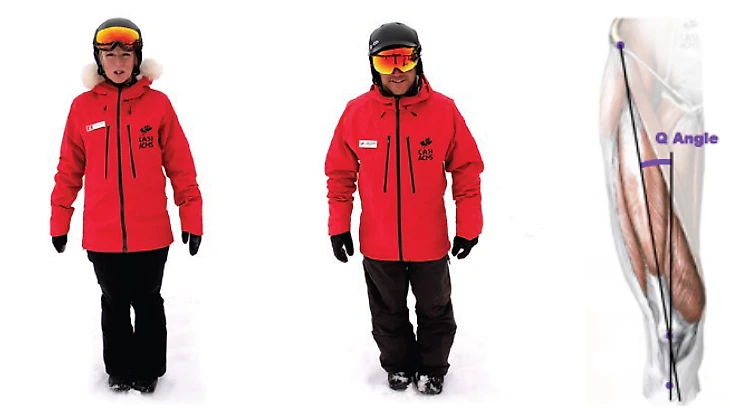 4. Иксование коленей. Колени завернуты вовнутрь. Угол «Q» - это угол между линией где квадрицепс встречается с коленной чашечкой и линией связки, соединяющей коленную чашечку с голенью.