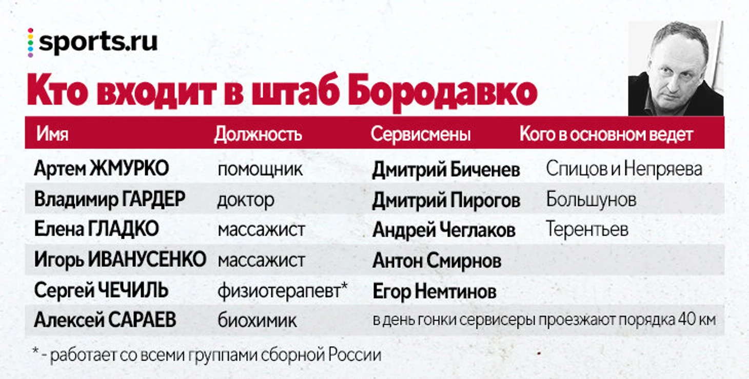 – А всего мы не знаем. Есть понимание, где и когда они сидят на сборах, какую примерно работу делают, но полной картины нет. Вот перед Пекином мы вместе проводили заключительный этап подготовки. И на некоторые тренировки они уезжали куда-то далеко в лес! Что там делали? Никто не знает.