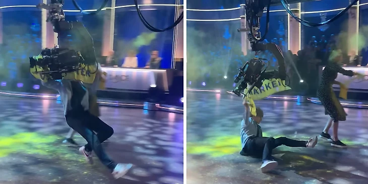 И вот теперь они добрались до шведского телевидения. Правда, для одного из активистов все закончилось жестким столкновением с камерой. Как только оказался на сцене – в него тут же врезалась аппаратура.