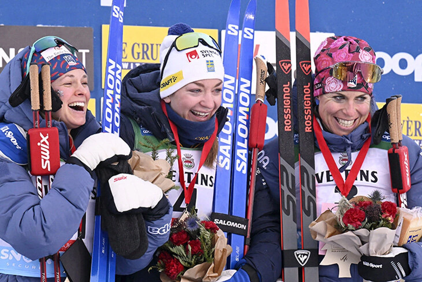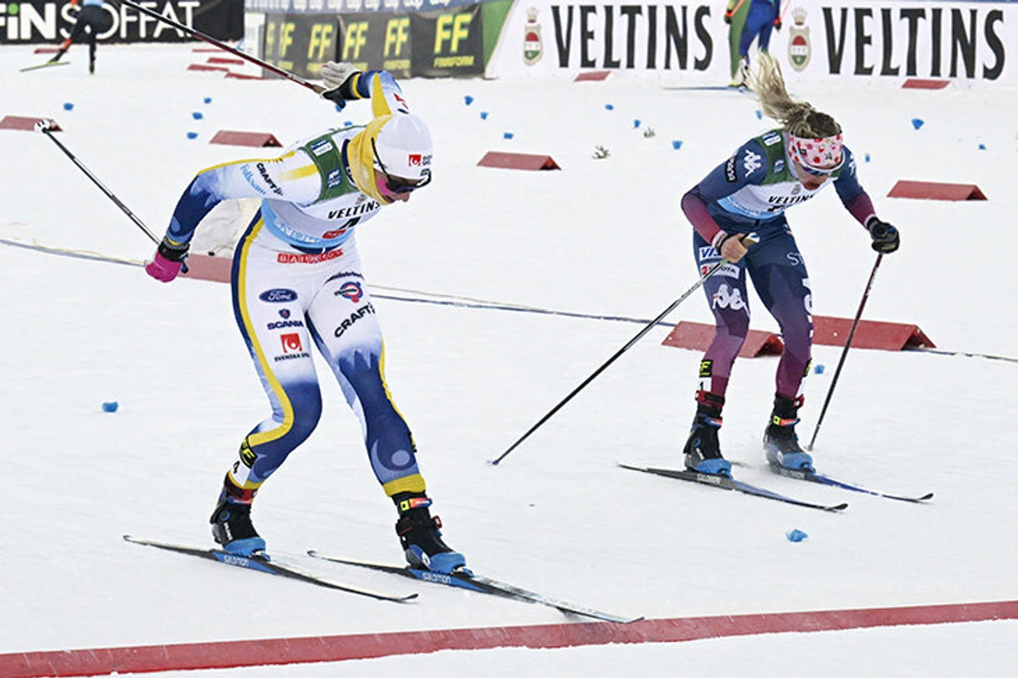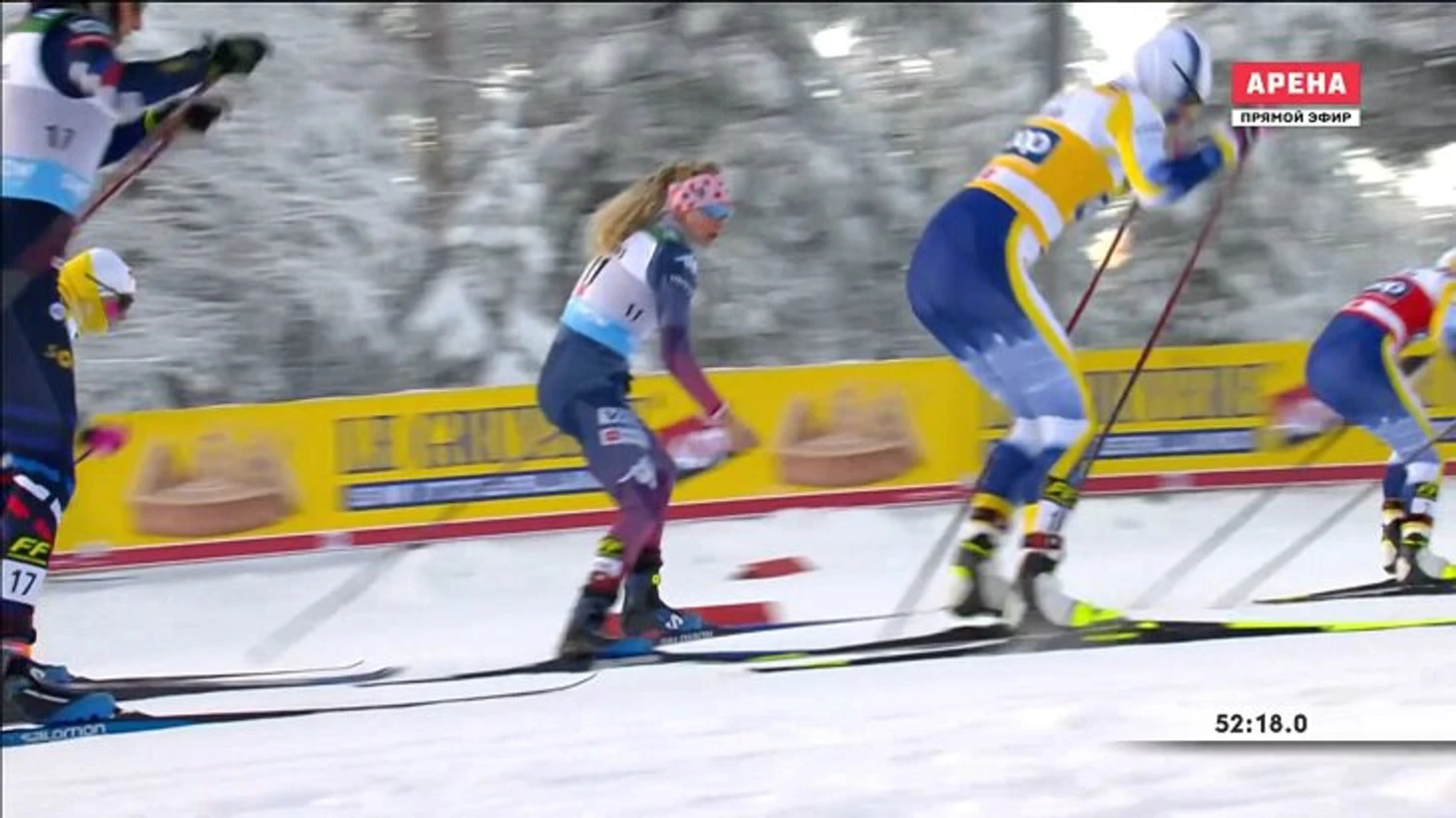 Да еще и палка оказалась длиннее, чем нужно. Диггинс сразу же откатилась в хвост группы, но успела накатить, мощно включилась на последнем подъеме и почти достала шведку Моа Илар на финише – до победы не хватило совсем чуть-чуть. Для 26-летней Илар, кстати, это первая победа и вообще первый подиум Кубка мира в карьере.