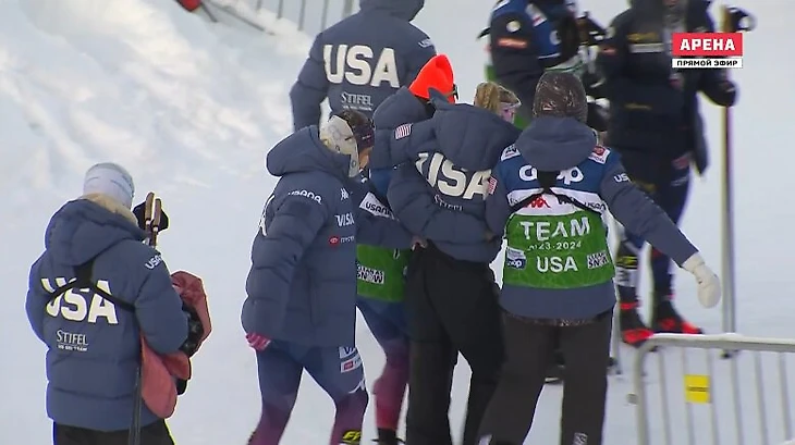 Вот это героизм американской лыжницы! С разбитым лицом, без перчатки в минус 18 и с чужой палкой взяла серебро