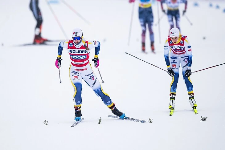 У женщин набралось только 9 команд из 8 стран. Швеция и Германия выставили по два состава, а еще одна команда собралась из трех итальянок и одной польки – они бежали под флагом FIS и заняли шестое место. Да, на Кубке мира по лыжам так можно – FIS разрешает командам объединяться, чтобы набрать побольше сборных в эстафеты.
