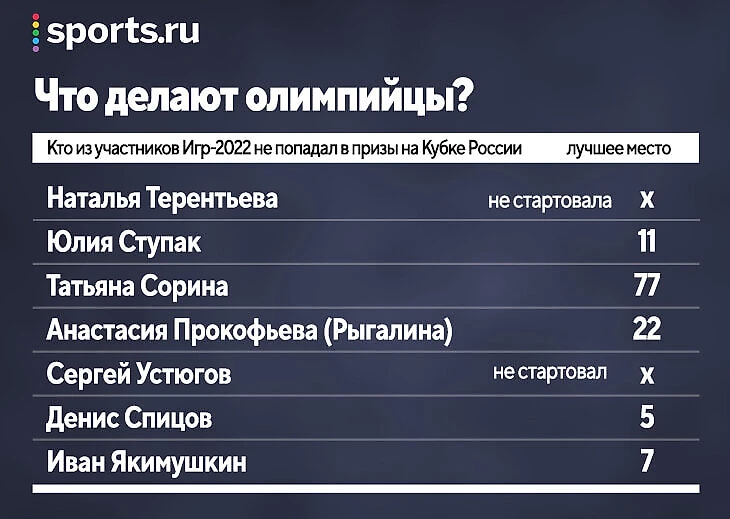 В женском Кубке страны ситуация за сезон перевернулась: не выступает Наталья Терентьева, которая в прошлом году была явным лидером, не в форме Юлия Ступак, только выходит из декрета Татьяна Сорина.