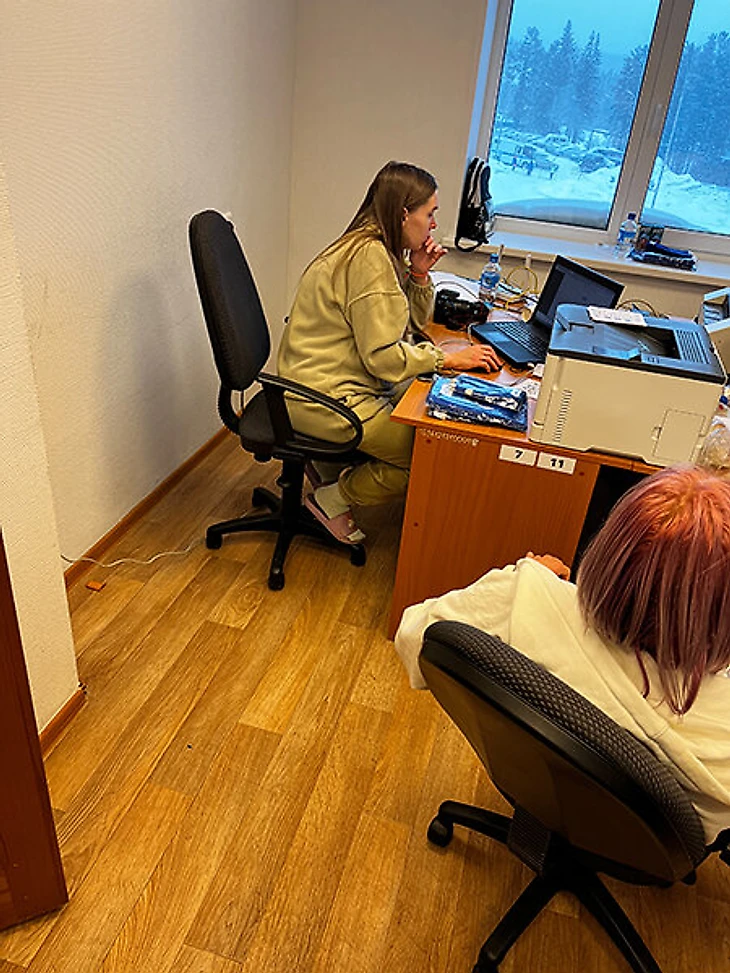 В пресс-центре – тоже. Иногда заходят спортсмены – отрабатывают имитацию прыжков