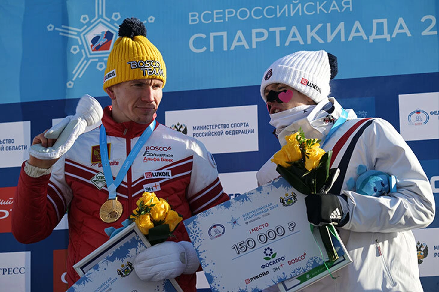 Выручали российские друзья: сборная Башкортостана (которая на самом деле в эстафете была четвертой) отдала белорусам свои бронзовые медали, а Наталья Гербулова – плюшевую игрушку-талисман.