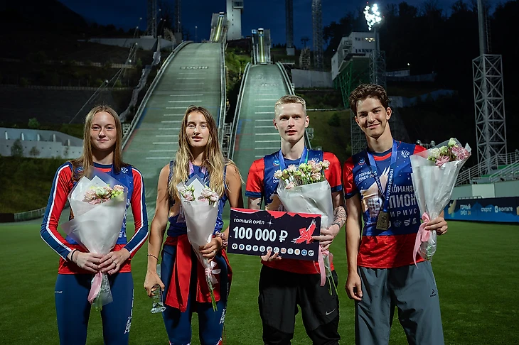 «Горный Орел» в 2024 году стал дебютом для соревнований новой дисциплины – «Суперкоманды» или «Супертим». На самом деле это соревнование оказалось гонкой на выносливость. Каждая команда состоит из двух участников ( здесь уместно сравнение с Формулой -1, где в каждой команде два болида) и вместо традиционных двух прыжков совершается три. В обычных соревнованиях команд раундов всего два, здесь же три. В первом участвуют все заявившиеся команды, во втором команд остается 12, а на третий круг выходят только восемь сильнейших.
