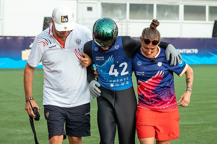 Все, кто смотрел прямую трансляцию «Горного орла» обратили внимание, что один из лидеров сборной России, участник Олимпийских игр, москвич Михаил Назаров после приземления схватился за колено и упал, так что покидать зону выката ему пришлось с посторонней помощью. На церемонию награждения Миша вышел в наколеннике под аплодисменты. Медицинское исследование через день показало неприятную травму.
