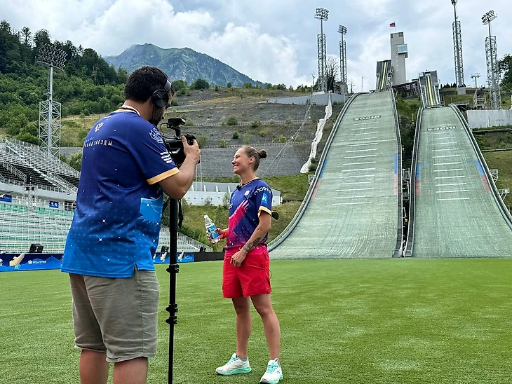 Было немножко непонятно сначала, я думала, что это легче немножко получается, что ли. В целом это такой прикольный опыт, тем более, когда ты знаешь спорт изнутри и все вот эти моменты, это круто. Организация это просто топчик, особенно если учесть, что это международный старт в нынешних реалиях, то это прямо супер круто. Ну и Сочи я люблю, и прыжки на лыжах я люблю, и все люди которые там были мне не чужие, все друзья-знакомые. Очень круто, я прямо в восторге. Иногда пересматриваю. что мы там снимали и мне в целом нравится, как я там на камере выгляжу, может это самолюбование такое…но вроде бы все четко-ясно, картинка хорошая. Круто, мне прямо очень все понравилось, наверное я бы даже если когда-нибудь выдалась такая возможность еще раз я бы в таком еще раз поучаствовала.