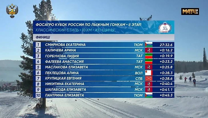 Почему же я говорю «лидеры», а не «лидер»? Потому что Смирнова смогла опередить Каличеву и выйти на первое место. Хотя ее преимущество было минимальным – всего 0,9 секунды. Только за два километра до финиша Екатерина окончательно утвердилась в своем лидерстве. В отличие от нее, Арина выглядела менее уверенно на заключительном участке трассы. К восьмому километру она уже уступала 6,6 секунды, а на финише опытная Смирнова увеличила свой отрыв до 16,2 секунд. Так Екатерина закрепила свое положение лидера среди женщин в первой части сезона. Теперь остается посмотреть, как она покажет себя в спринте, ведь в прошлом она демонстрировала высокие результаты и в этом виде соревнований.