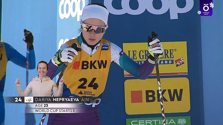 Савелий Коростелев и Дарья Непряева пробежали коньковый спринт на этапе Кубка мира в швейцарском Давосе.