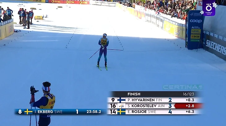 7.7 км – тут лидер уже Далквист. Дарья все еще 6-я (+39,0), но впереди спуск – там у наших лыжников проблемы сегодня.