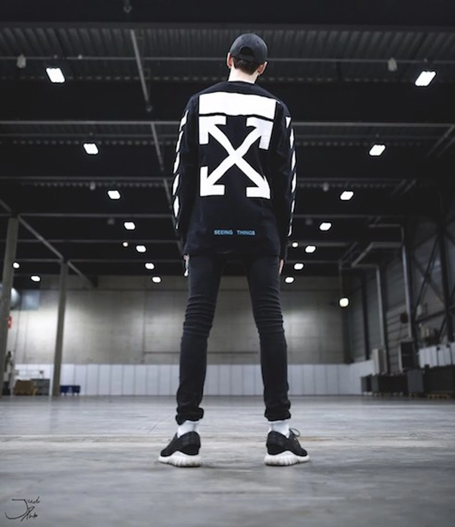 Off-White – американский бренд Вирджила Абло, друга Канье Уэста, помогавшего рэперу развивать личные проекты: от альбомов до показов одежды. В 2012-м Абло создал бренд одежды Pyrex Vision, критикам не нравилось, зато продажи были в порядке. Успех Pyrex помог Вирджилу сделать новый бренд — Off-White, который стал дико популярным. Возможно вы видели на улицах людей с большим принтом на спине, изображающим строительную оградительную растяжку (у Месута Озила таких вещей полный шкаф). Это фирменный узор Off-White.