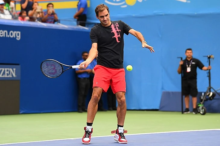 Роджер давно стал главным теннисным активом Nike. Он вышел в Nike x Off-White Air Jordan 1 на одном из благотворительных мероприятий, где выступил в качестве тренера для молодых теннисистов.