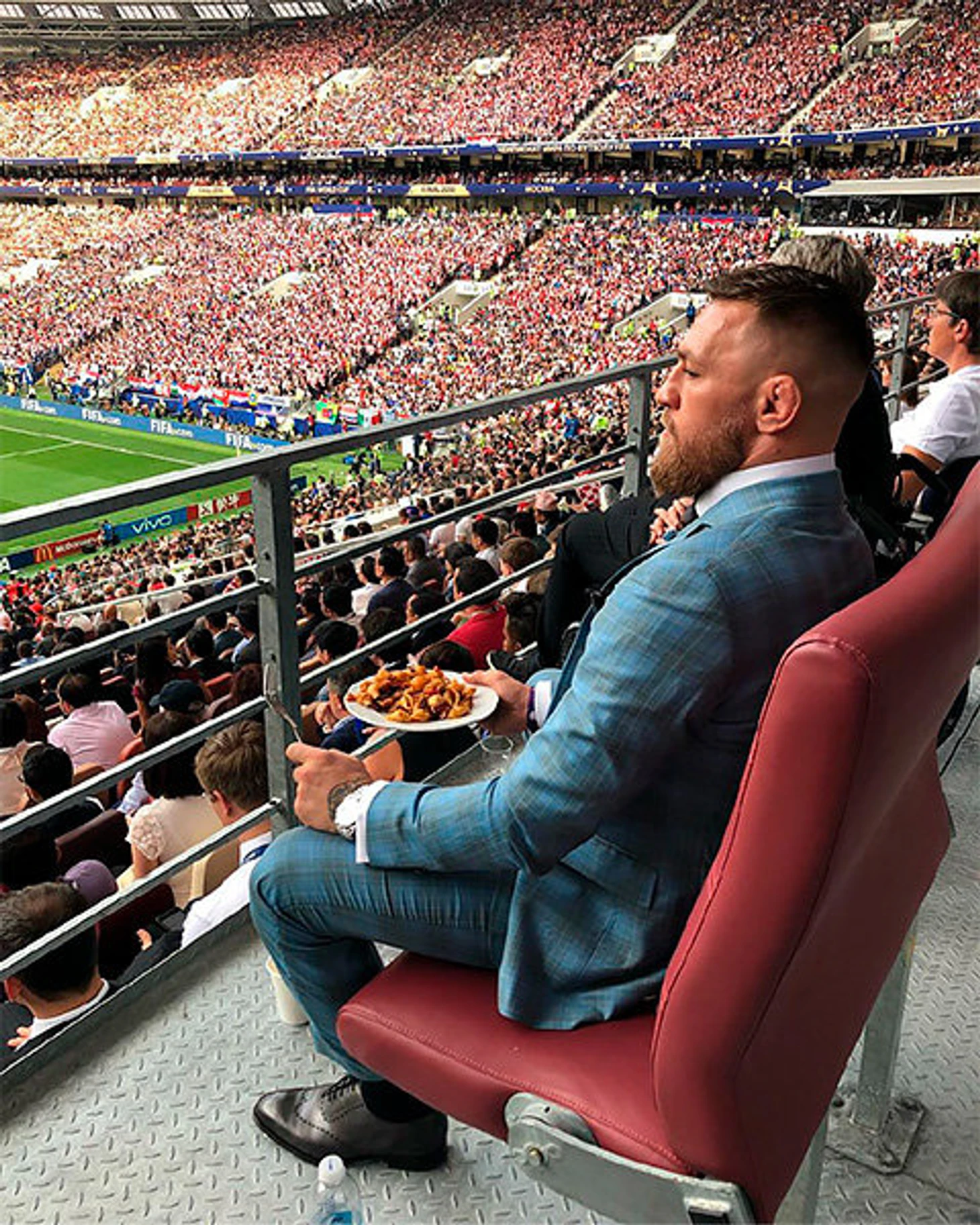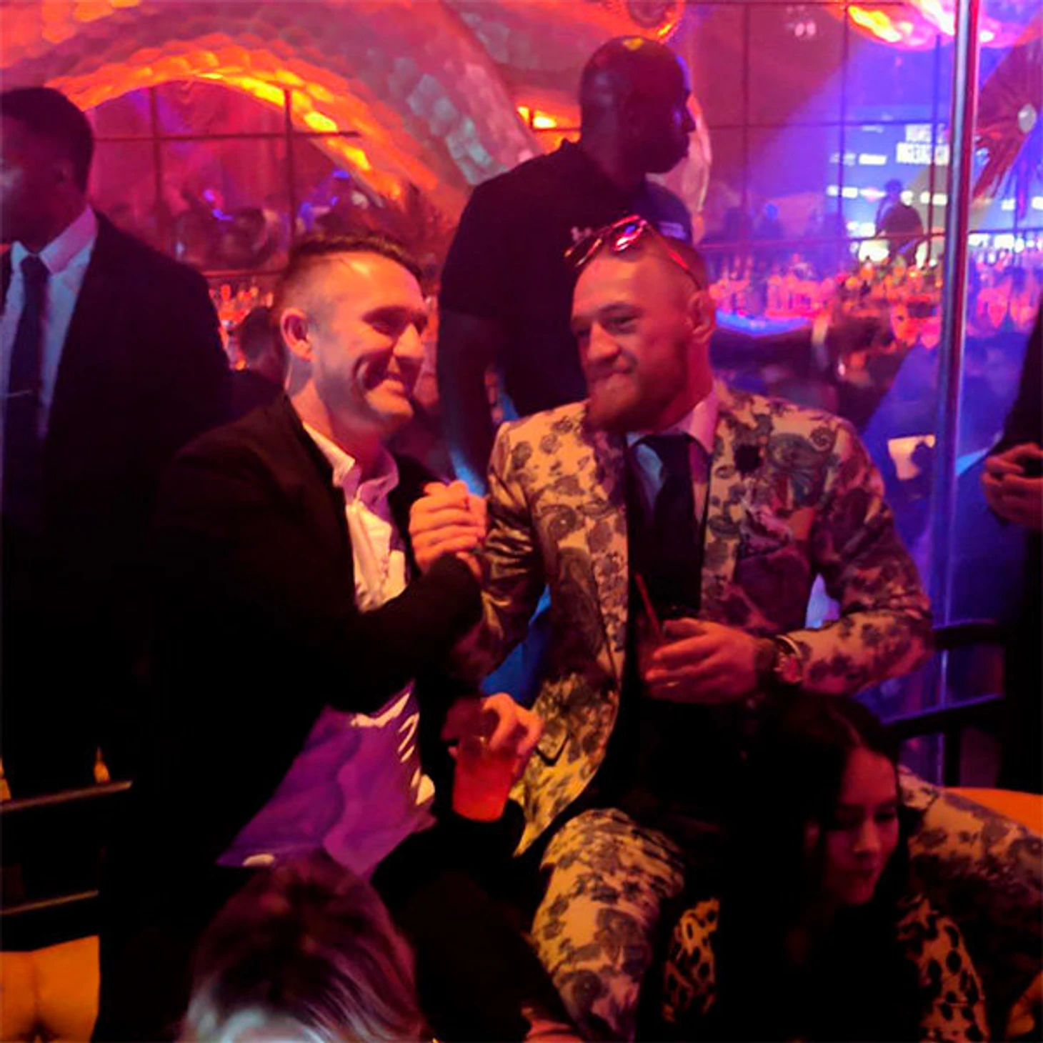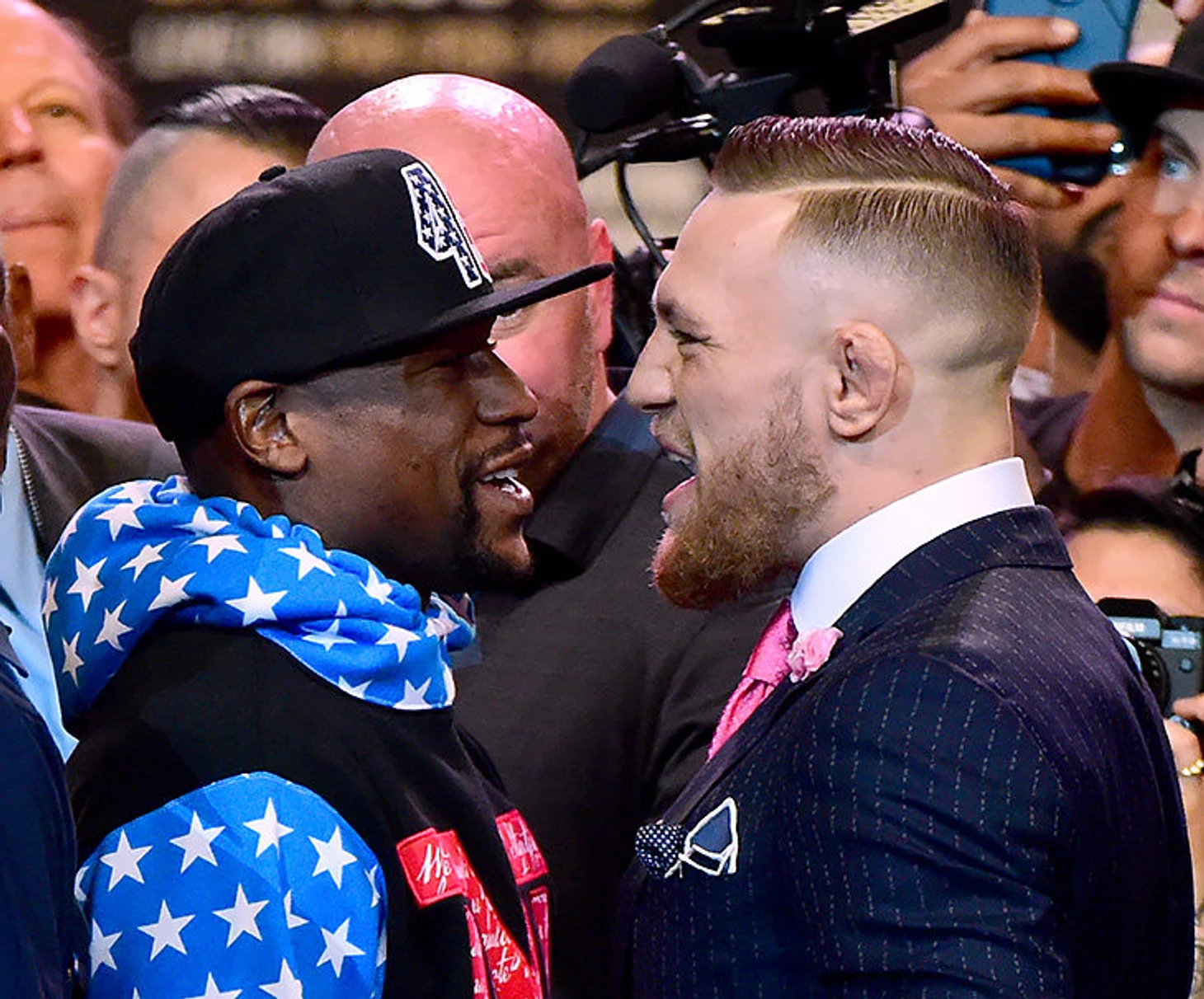 Прошлым летом, когда МакГрегор раскручивал бой с Мэйвезером, то сделал акцент на том, что одевается элегантнее Флойда. Главный момент спора о том, кто лучше одет, случился в Торонто: Конор вышел в костюме от Хейла, Мэйуэзер – в джинсах, футболке и с рюкзаком. «Ты похож на 12-летнего брейкдансера. Какого хера? Тебе 40, оденься по возрасту! Зачем ты притащил школьный рюкзачок на сцену? Ты же даже читать не умеешь. 40 лет, со школьным рюкзаком, читать не умеет», – веселился Конор. Бой МакГрегор проиграл, но все равно закатил масштабную афтепати, куда тоже прибыл в костюме. Билеты на вечеринку стоили 200 долларов (пришло две тысячи человек), среди гостей был Робби Кин.