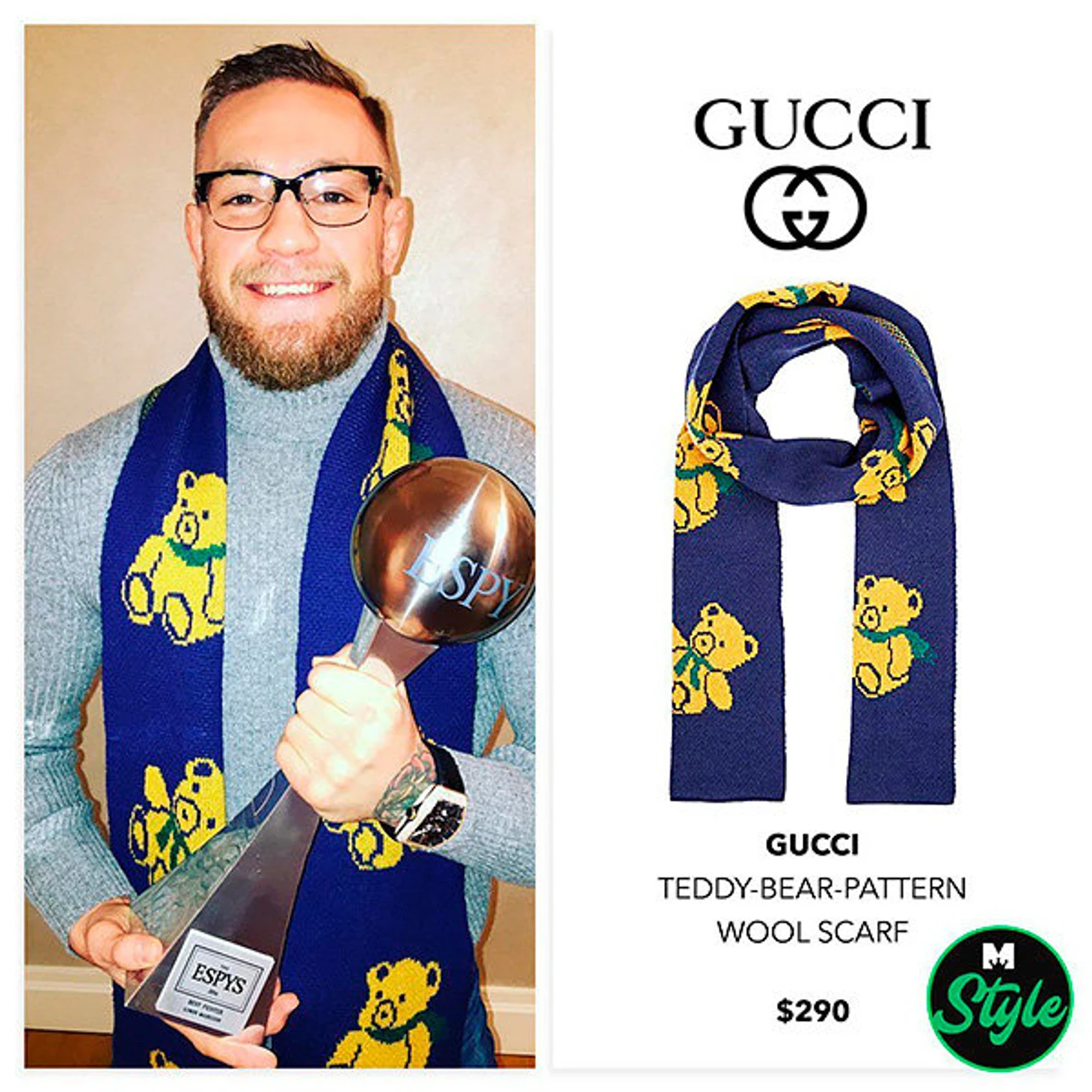 Gucci точно второй любимый бренд Конора после David August. В инстаграме бойца десятки фото в Gucci. Он фотографировался в шарфе бренда c медвежонком после премии ESPN: