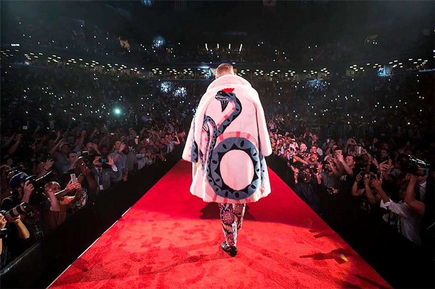 Приходил в шубе Gucci на пресс-конференцию перед боем с Эдди Альваресом в 2016-м. Кстати, это была отсылка к шубе Джо Фрейзера, в которой тот появлялся перед боем с Али в 1971-м.