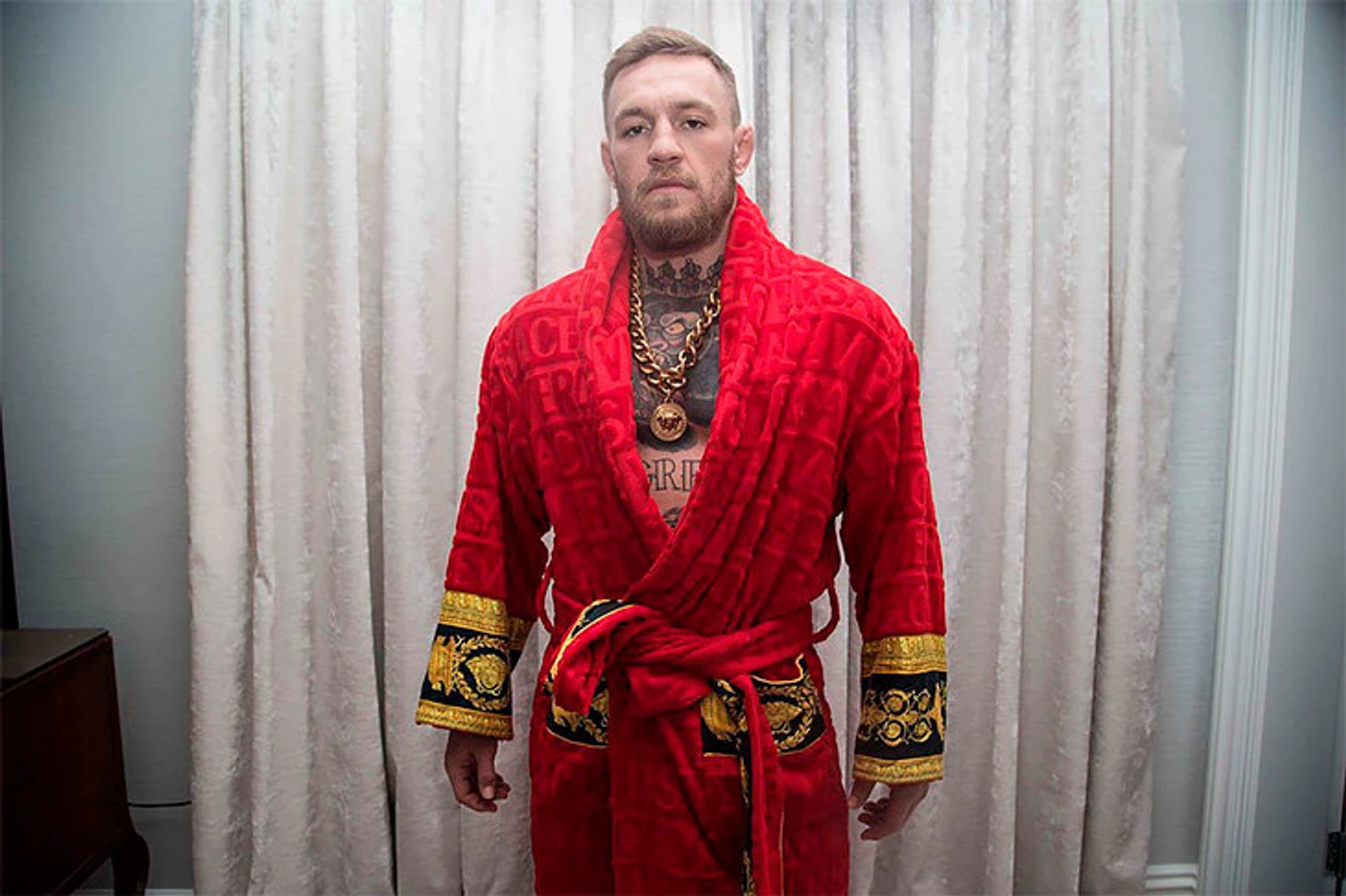 Конора также видели в Louis Vuitton, Givenchy, Kenzo, Versace (такой халат ему подарила Донателла Версаче). Так одеваются примерно все молодые знаменитости, реально интересный выбор команды Конора – свитер австралийского бренда COOGI, который он надевал перед боем с Альваресом. COOGI – любимый бренд иконы нью-йоркского (там проходил бой) рэпа 90-х Notorious (такое же прозвище у МакГрегора) B.I.G.