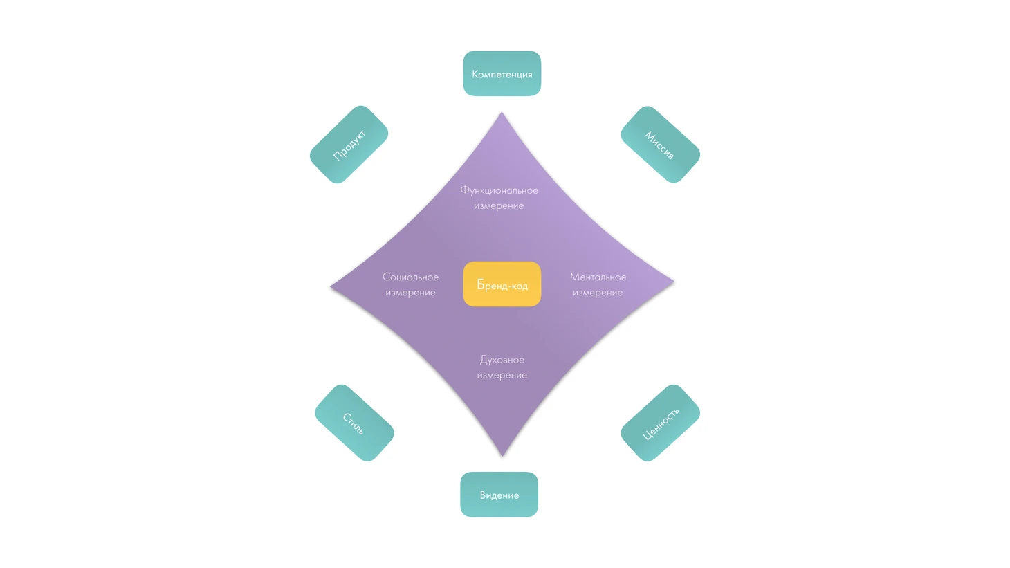 2. 4-D брендинг кодирует продукт на метафоричном “мыслительном поле бренда” и структурирует его по 4 измерениям: