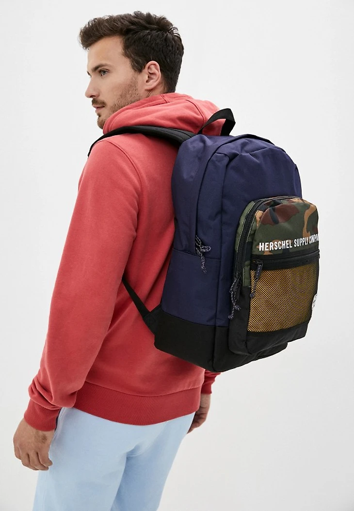 Рюкзак известной марки аксессуаров Herschel выполнен из износостойкого полиэстера с текстильной подкладкой. Плечевые ремни регулируются, имеется ручка для альтернативной переноски, а также нагрудная стяжка для равномерного распределения веса рюкзака. Модель имеет 2 наружных кармана с молниями, в одном из которых органайзер. Внутри рюкзака также находится плоская секция для гаджета. Смотреть модель на Lamoda.