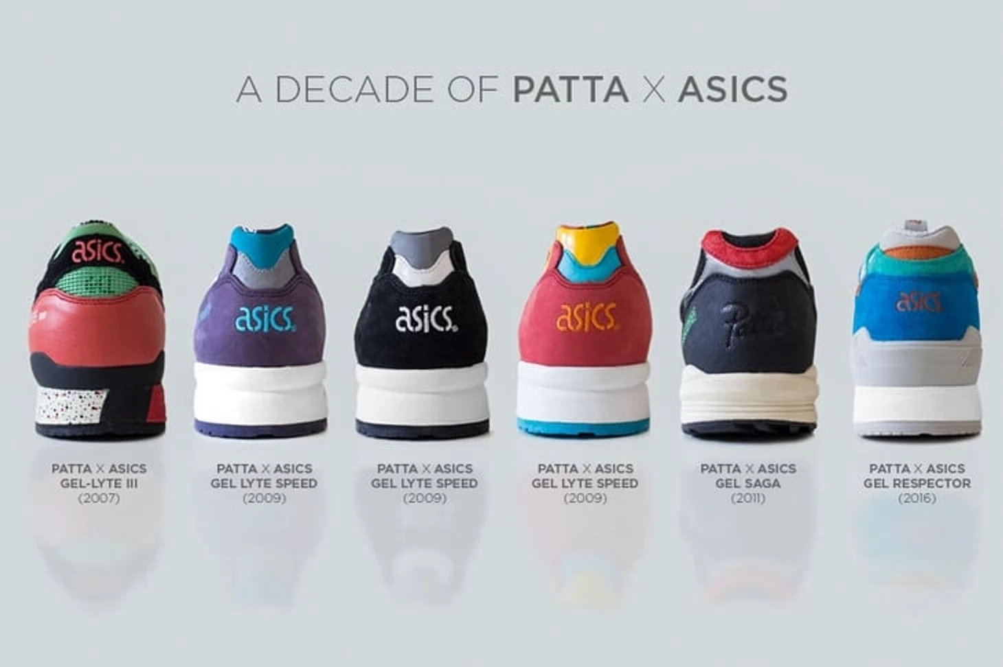 Следующим бизнес-партнером «Патты» стал японский Asics. Через год после успешной работы с «Найк» в Patta объединили усилия с Asics для преобразования модели Gel Lyte III. Надо сказать, что у японского производителя эта коллаборация стала второй в истории (Asics основан в 1977 году). Пара в смелой расцветке стала популярной и хорошо продавалась. Это укрепило связи Patta и Asics: за 10 лет фирмы выпустят еще 6 совместных работ.
