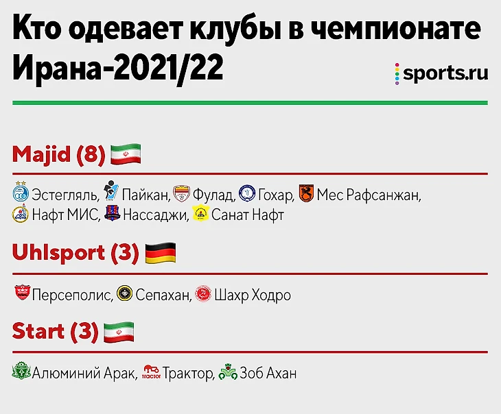 А кто одевает иранские клубы? Доминируют иранские компании, иностранцев представляет только Uhlsport