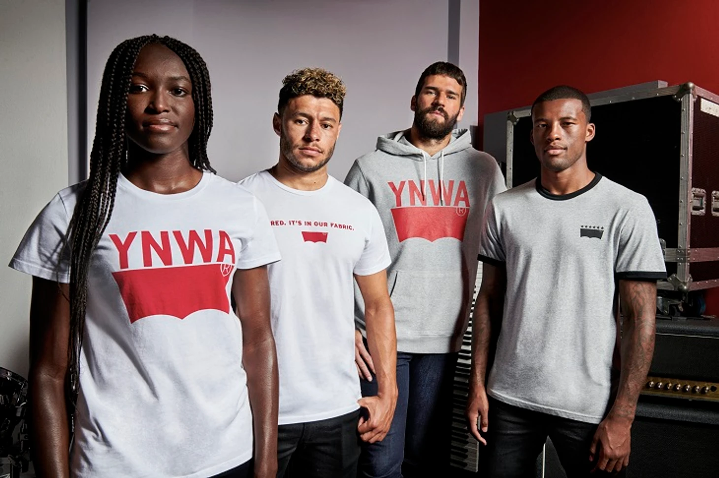 В 2018-м Levi’s запустил капсульную коллекцию с «Ливерпулем», которая включила в себя джинсы, куртки и рубашки. На предметы одежды сдержанно добавили лого клуба и текст YNWA.