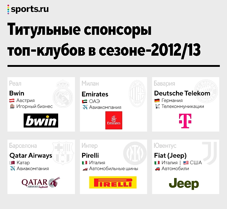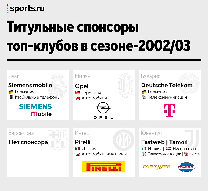 Среди европейских клубов были те же тенденции: «Реал» рекламировал телефоны Siemens, а «Бавария» и «Ювентус» запартнерились с телекоммуникационными компаниями.