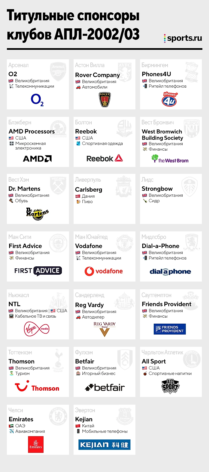Производитель телефонов Kejian еще 20 лет назад провернул то, что сейчас в АПЛ повсеместно: компания работала только в Китае, но заключила контракт с «Эвертоном», чтобы рекламировать себя среди китайской аудитории. Это был верный признак того, что Премьер-лига становится глобальным продуктом. Сама фирма, правда, обанкротилась в 2013 году.