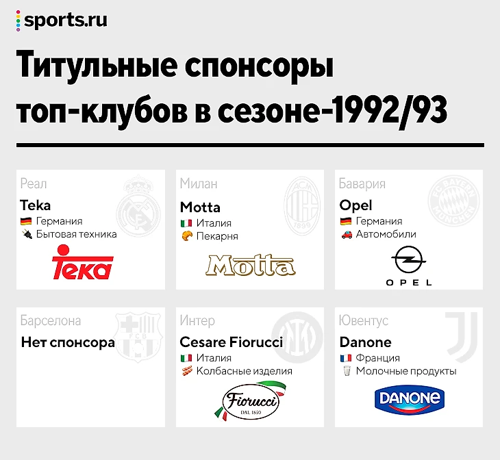 Итальянские топ-клубы поначалу сотрудничали в основном с компаниями из пищевой промышленности: это касается как миланских грандов, так и «Ювентуса».