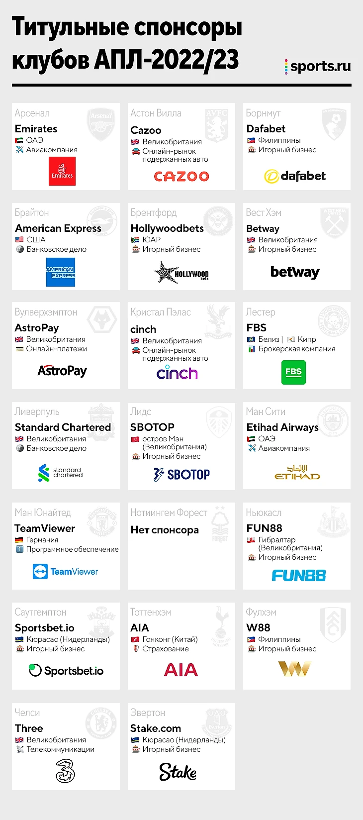 От ксероксов и древесины до букмекеров и криптовалют: как менялись спонсоры клубов АПЛ и остальной Европы