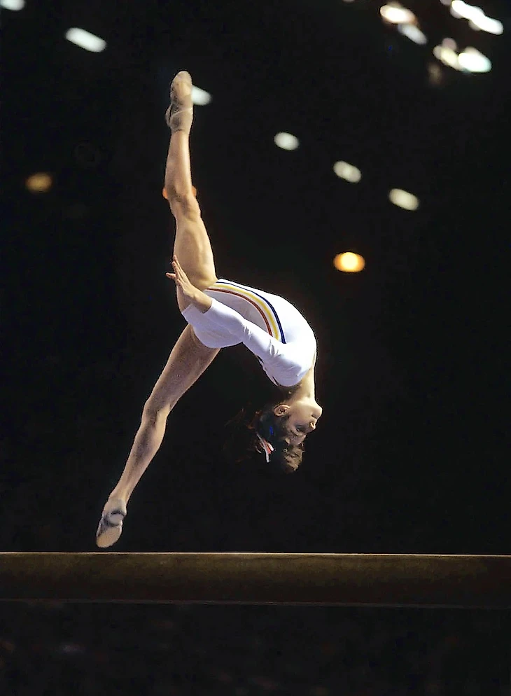 2 августа 1976 года. Румынка Надя Команечи завершает сальто во время летних Олимпийских игр в Монреале. Она выиграла три золота на тех Играх и стала первой гимнасткой, которая получила все высшие баллы в олимпийском гимнастическом соревновании.