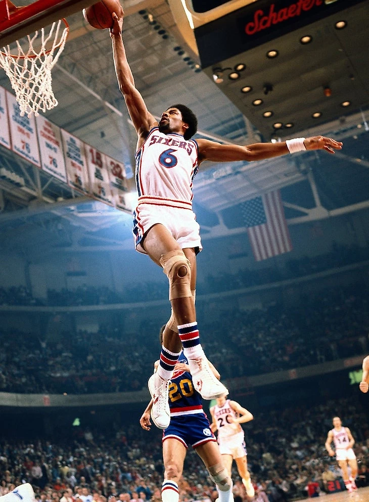 Январь 1977 года. Данк одной рукой от нападающего «Филадельфии 76» Джулиуса Эрвинга.