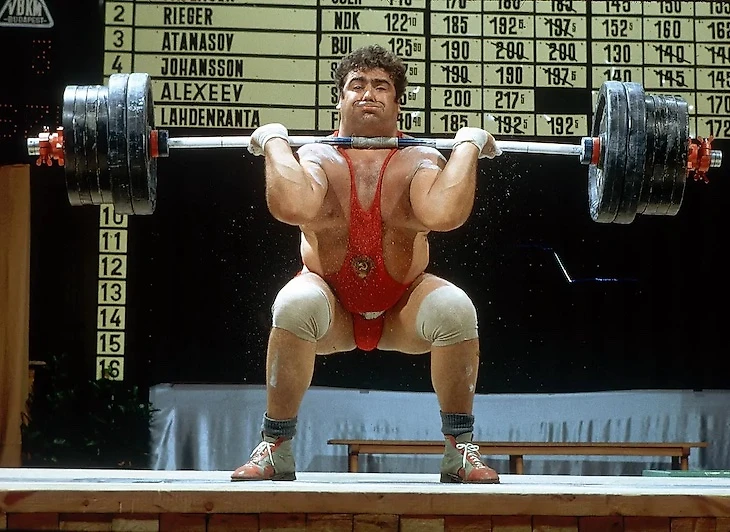 Январь 1969 года. Советский тяжелоатлет Василий Алексеев завершает подъем штанги. Алексеев установил 80 мировых рекордов между 1970 и 1977 годами, выиграл две Олимпиады, по 8 раз брал золото чемпионатов мира и Европы.