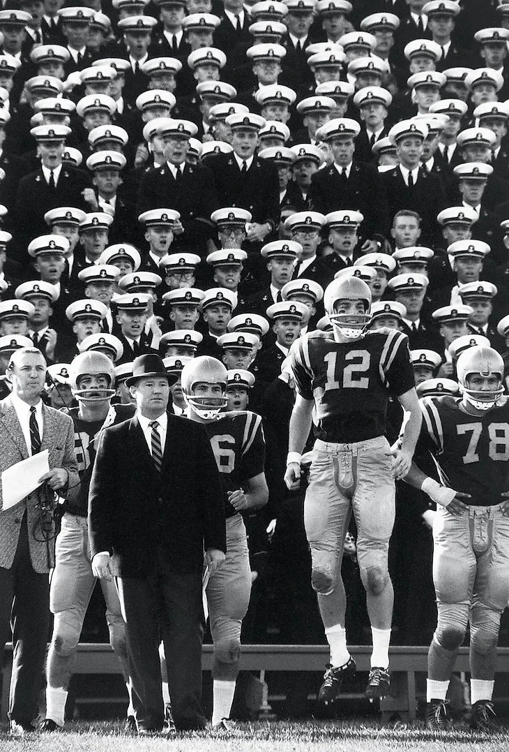 9 ноября 1963 года. Квотербек ВМС Роджер Стаубах радуется во время победы над «Мэрилендом».
