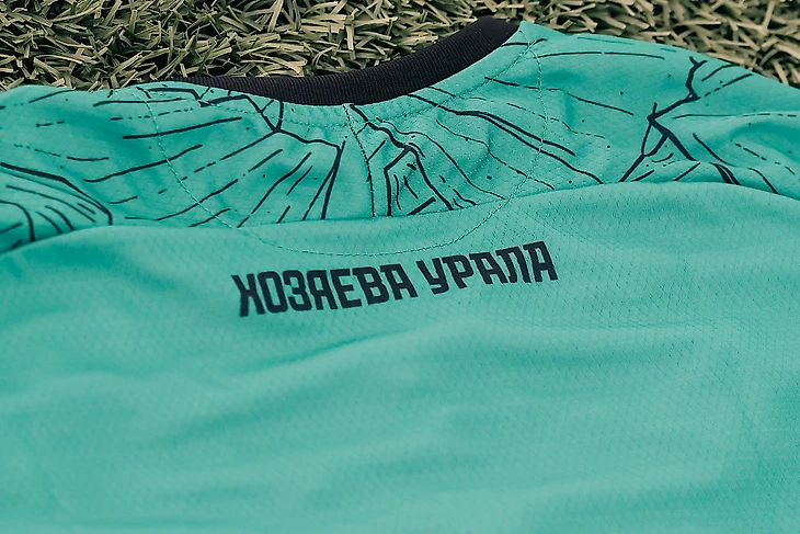 Детали на гостевой форме в той же концепции. На внутренней стороне воротника – обозначения полезных ископаемых, добываемых в Прикамье: нефть, уголь, известняк, соль и другие ресурсы. На внешней – культовая кричалка болельщиков «Амкара». Вратарская форма на этот раз зеленая – тоже в духе уральской природы.