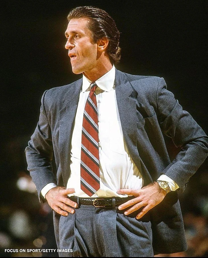 Вспоминая известных спортсменов, которые становились посланниками брендов, стоит упомянуть знаменитого баскетболиста NBA Пэта Райли. Когда в 1980-х он вышел на площадку в новом качестве — тренера, его стиль изменился со спортивного на подчеркнуто элегантный. Все дело в дружбе Джорджо Армани, которая началась в 1982 году, когда Райли был тренером Lakers.