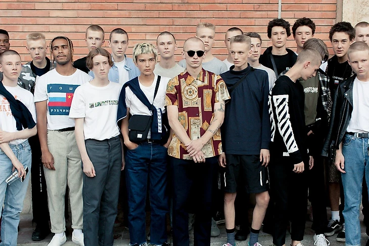 Гоша Рубчинский — российский дизайнер и основатель одноименного бренда, который привлёк внимание мировой моды своим уникальным стилем, вдохновленным постсоветской эстетикой и молодежной субкультурой. Его коллекции сочетают в себе элементы уличной одежды, спорта и военной формы, что делает бренд популярным среди молодежи, интересующейся модой на стыке стиля и символики 90-х годов.