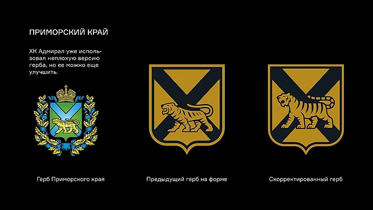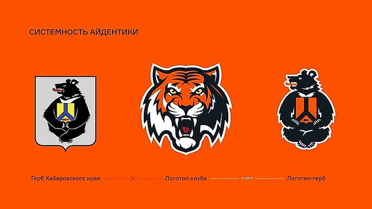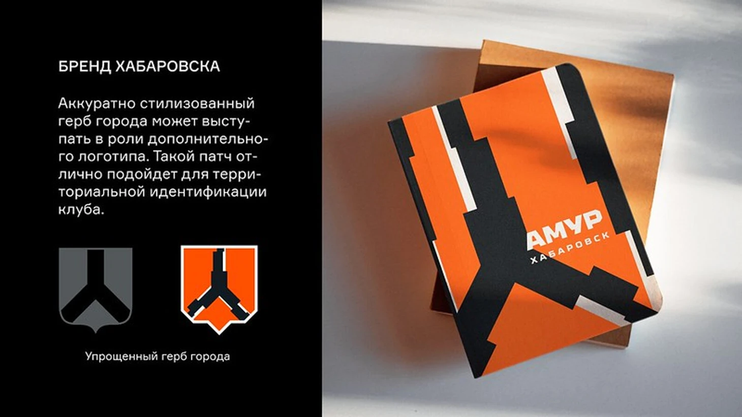 Еще один проект для «Амура» касался развития нового фирменного стиля и расширения линейки элементов. Так появился переосмысленный герб города, который объединил упрощенные элементы оригинального герба с фирменной тигриной тематикой. Этот стилизованный герб стал дополнительным логотипом, подчеркивающим территориальную идентификацию клуба.