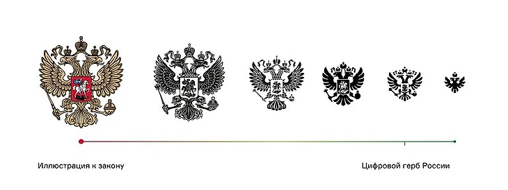 Кроме того, существует Официальный цифровой герб России – одноцветный вариант для экранов и мелких форматов. Таким образом, итераций герба существует множество.