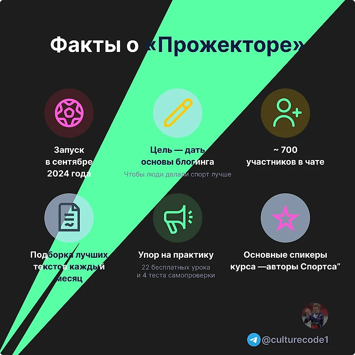 · Команда Спортса’’ вынашивала идею «Прожектора» более трех лет и запустила курс в сентябре 2024 года